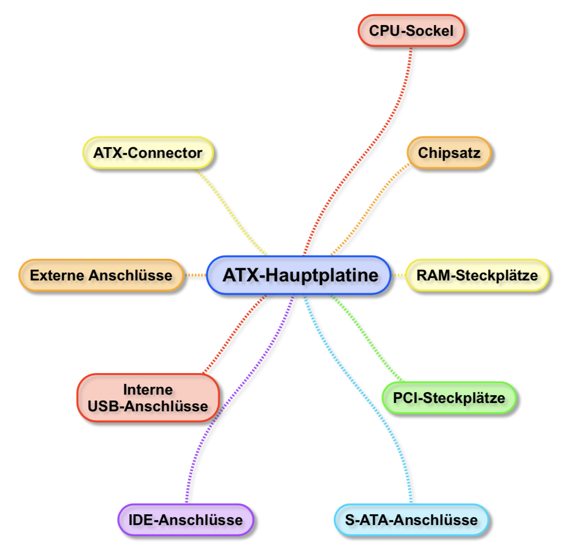 Die Hautplatine (eng. motherboard oder mainboard) ist das zentrale Bauteil der Systemeinheit. Sie beinhaltet Komponenten wie CPU, Steckplätze, Speicher oder Schnittstellen. Außerdem beinhaltet das Mainboard eine Northbridge und Southbridge, welche die Komponenten miteinander verbindet. Grafikkarten, Soundkarten und Netzwerkkarten sind mittlerweile direkt onboard auf das Mainboard gelötet. Aktuelle Hauptplatinen besitzen das sogenannten ATX-Format. Eine ATK-Hauptplatine enthält folgende Komponenten:
